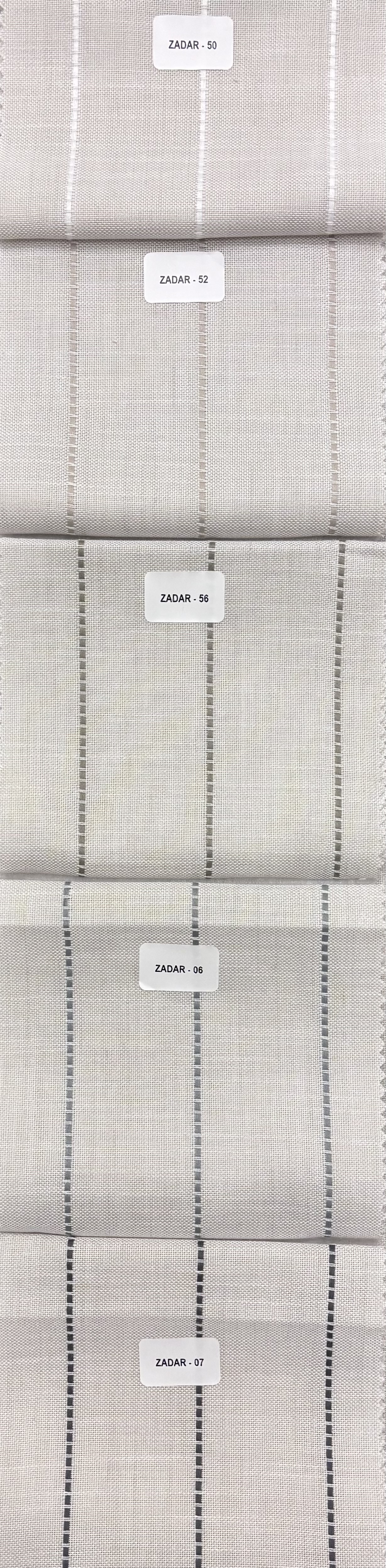 Kangas Zadar roomakardinale. Naturaalse välimusega poolläbipaistev materjal. Triip jääb suunaga ülevalt alla. Antud materjal sobib nii vahevarrastega ehk tugeva voldiga roomakardina kui ka ilma vahevarrasteta ehk pehme voldiga roomakardina valmistamiseks.